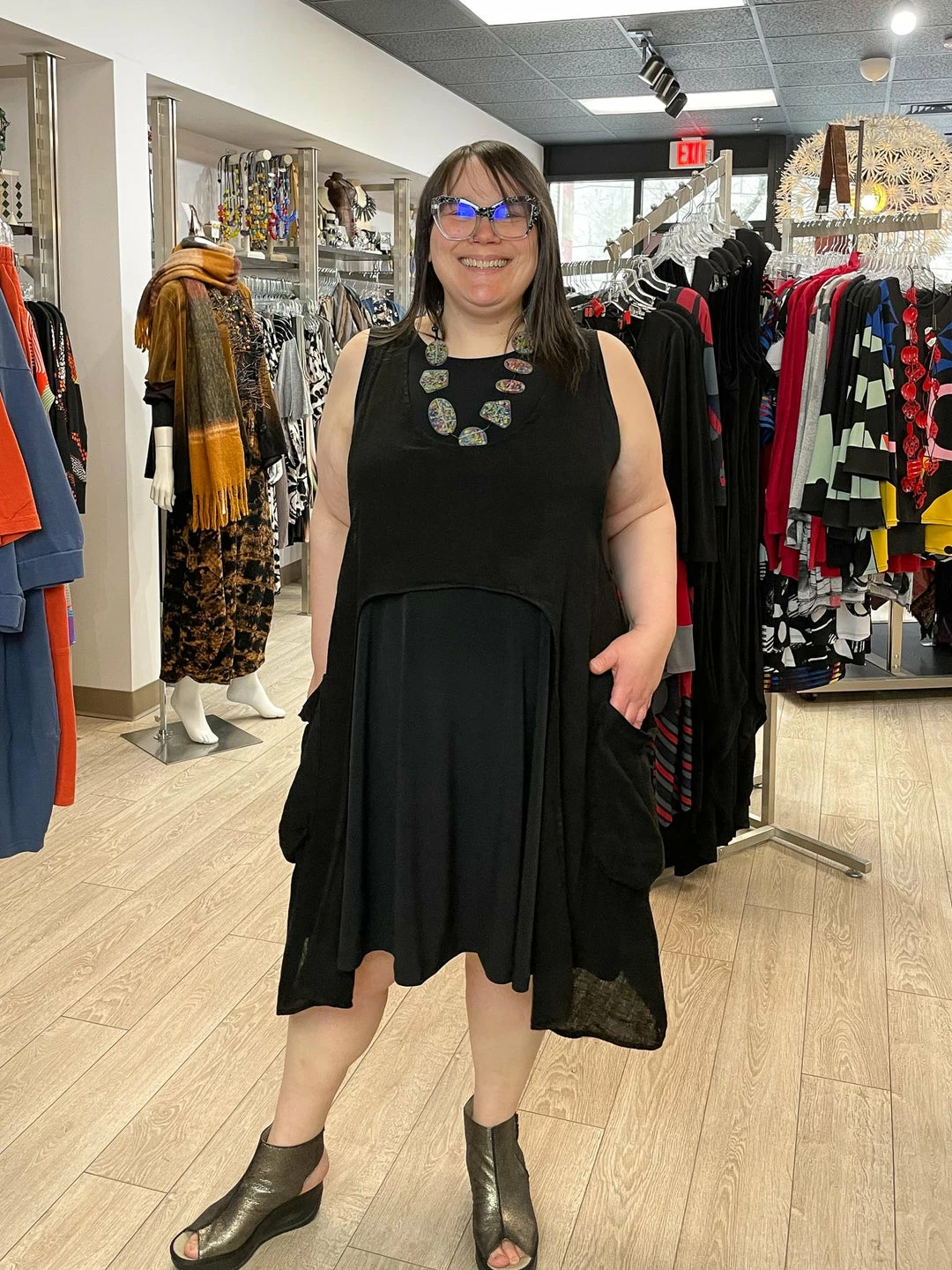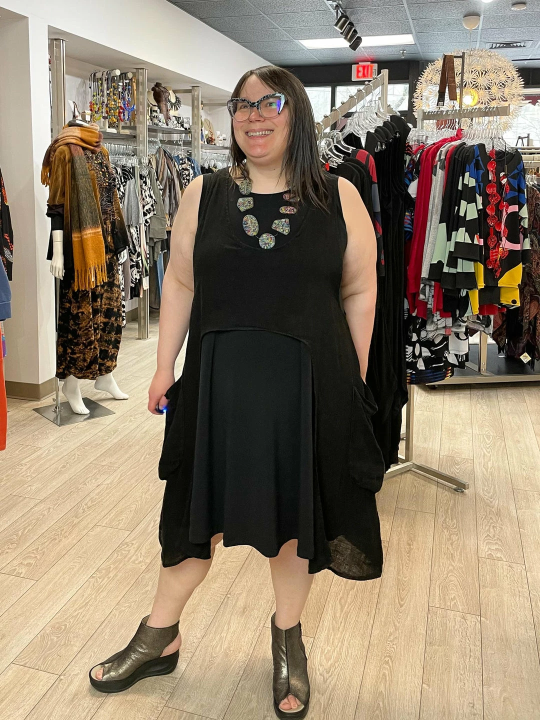 Bodil’s Pocket Top is a chic layering piece and perfect for warm weather in breezy cotton gauze. The sleeveless a-line body features a cropped front with oversized arm holes and a dramatic high low hemline, along with large pockets sides. A scoop neckline completes the look, to show off what you pair under it.