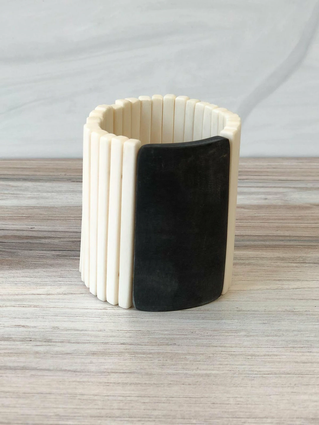 CATHs Jewelry Matchstick Rectangle Horn Cuff, Bone/Grey