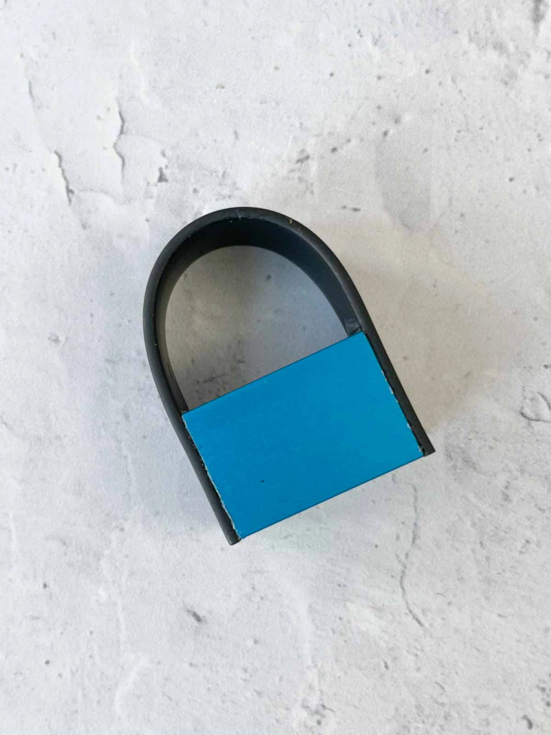 This fun statement ring from Christina Brampti features a rectangular aluminum bar on matte black rubber.