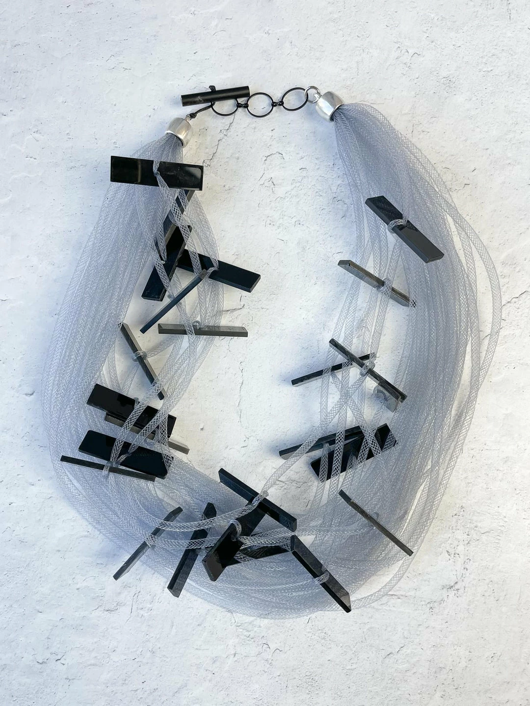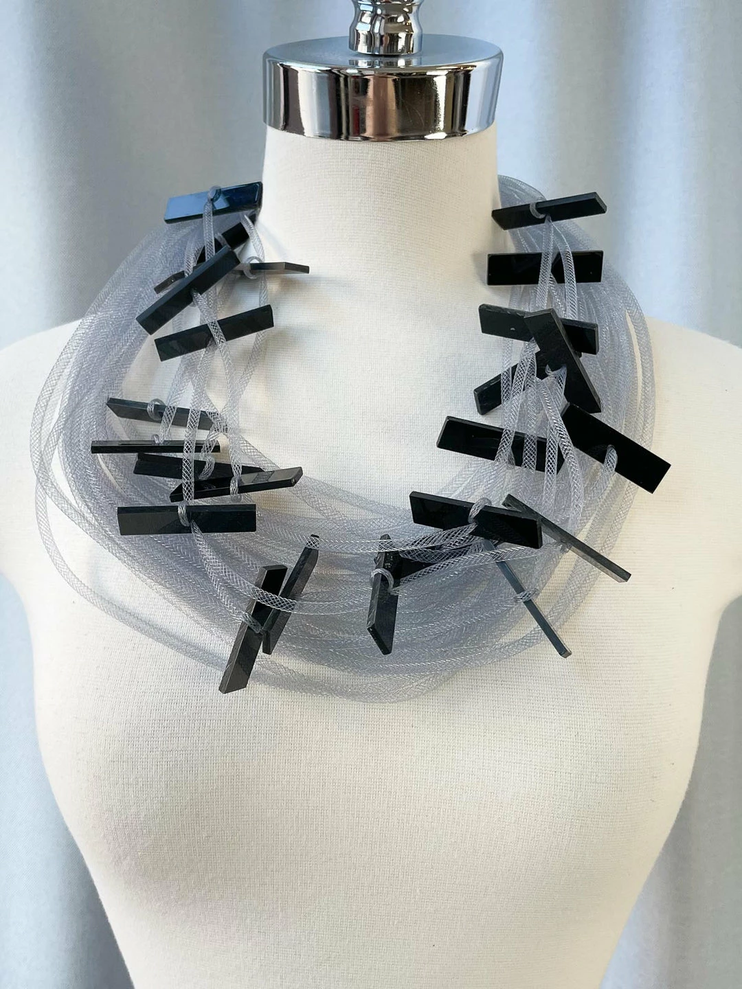 Christina Brampti Christina Brampti Short Multi Strand Tulle & Acrylic Bar Necklace, Grey/Black