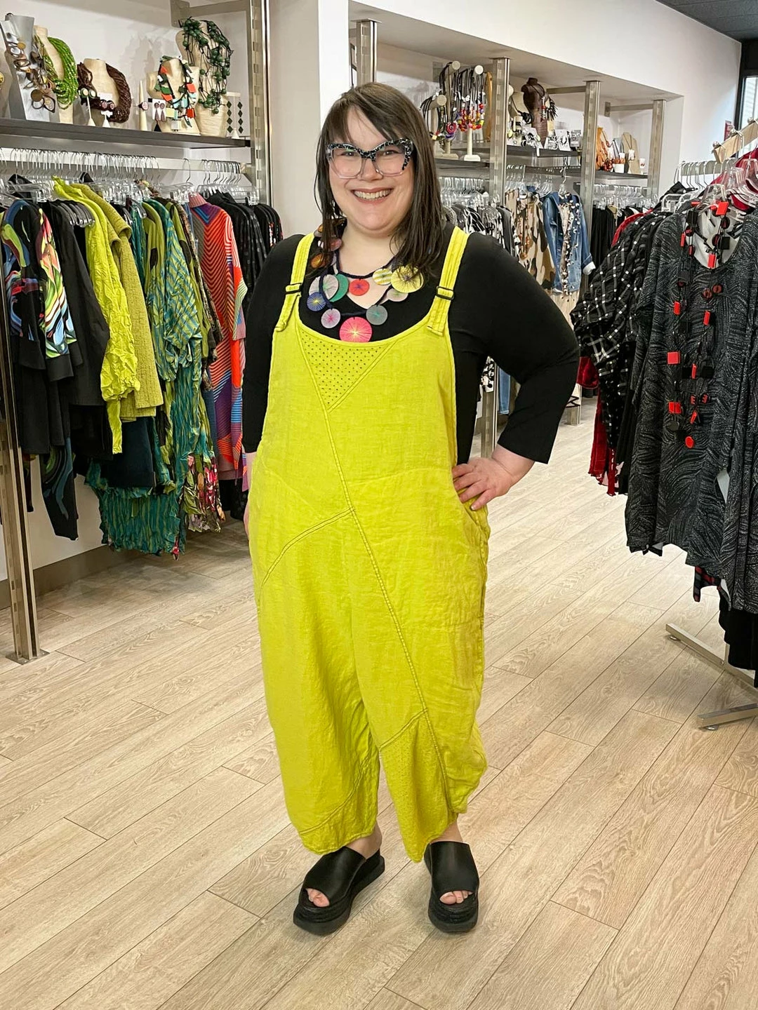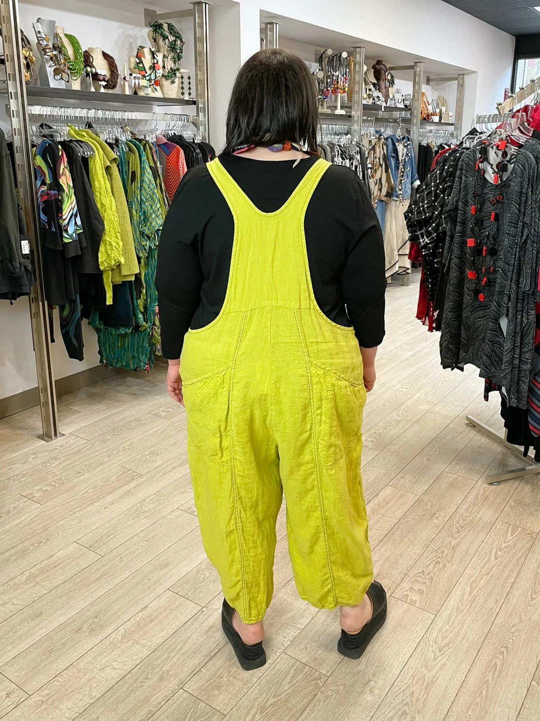 Cynthia Ashby’s Grant Overalls are a sleeveless bib style jumpsuit with a relaxed body and cropped latern shaped legs. In easy linen woven, the roomy relaxed body features accents of eyelet accents throughout, including at the bib front, legs and rear pockets. Unique angular seam details has black contrast stitching. Side seam pockets and adjustable buckle straps finish off the details.