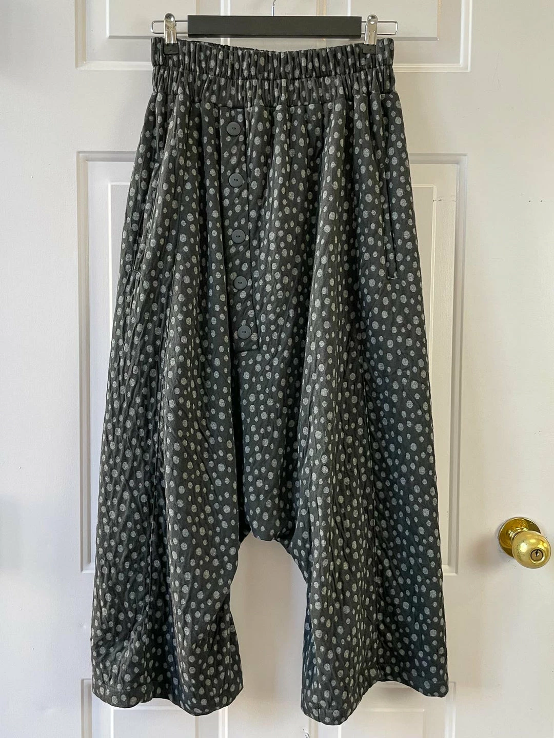 Dress To Kill Dress To Kill Button Harem Pant, Black Grey Quilt Dots
