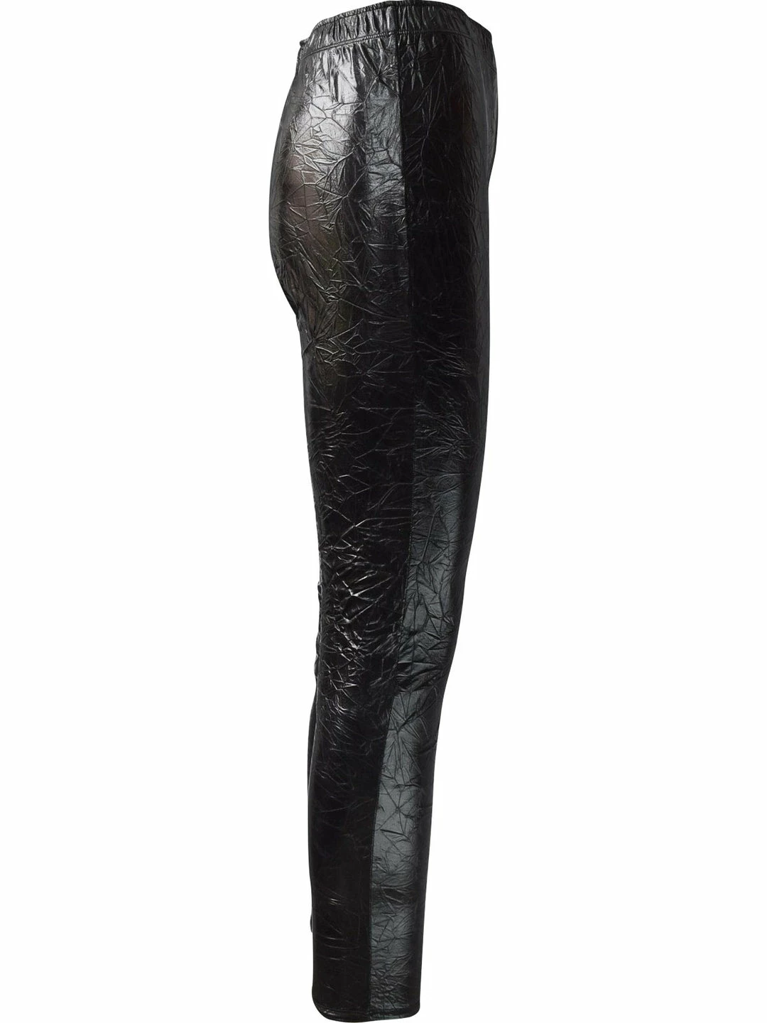 These edgy legging by IC Collection stand out in a funky crushed faux leather look. Skinny legs with pull on elastic waist.