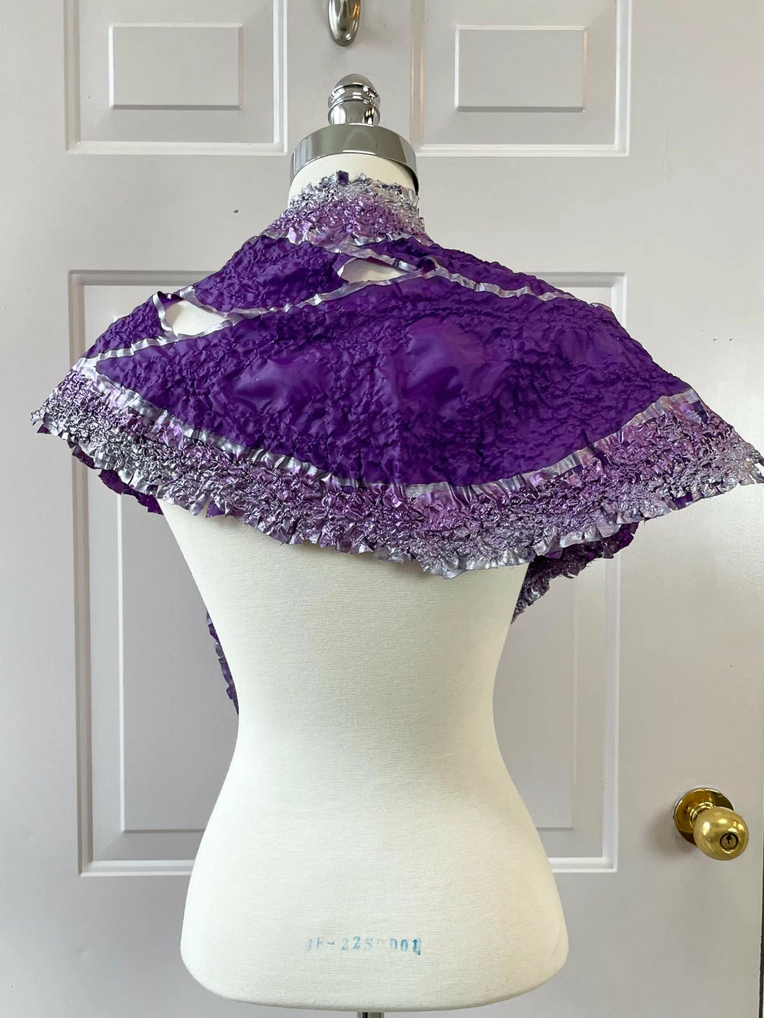 This short scarf by Spanish fiber artist Imma Costa features an avant-garde texturing technique along with strategicly placed cutouts for a one-of-a-kind look. Hand-painted accents stand out in coordinating metallics. Pull one end of the scarf through any of the holes for a statement look as unique as you!