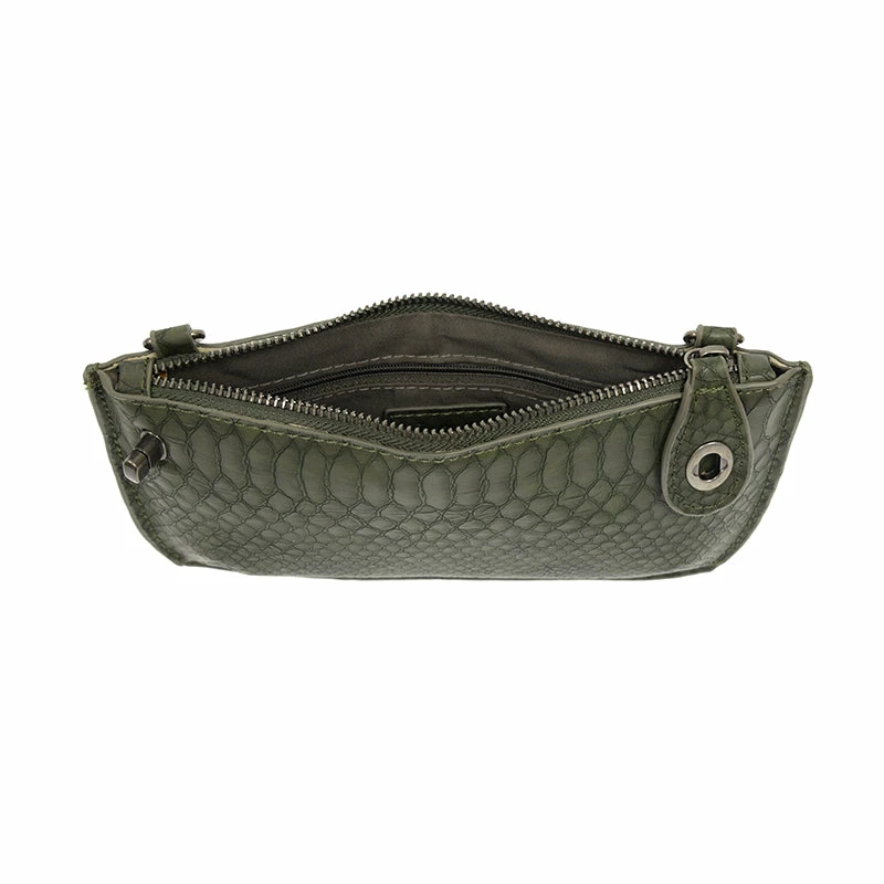 This Python Mini Wristlet Clutch in its fresh colors and sleek silhouette is the finishing touch to any outfit. Its classic and versatile style makes it perfect for the office, a date night, special event and more. It features a polished turn lock, six card slots and interior zipper for change. Update your style in many ways, with removable straps that let you turn this bag from a wallet, to crossbody, belt bag or wristlet.
