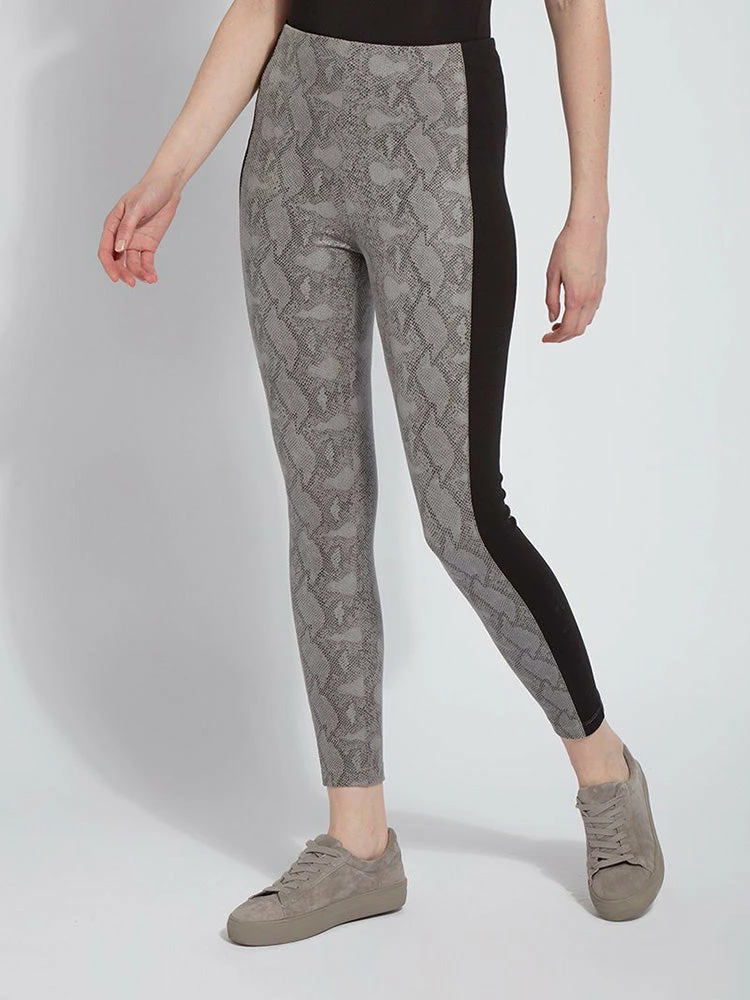 Showcase these stretchy Foil Faux Suede skinnies when errand running, working from home or enjoying coffee with friends! The work or leisure Foil Suede Laura Legging is crafted using a foil lamination technique on 4-way stretch faux suede for urban-inspired style. They feature a concealed patented waistband that smooths and shapes; body-hugging comfort for work or leisure wear; and anatomical seaming for rear contouring and lift. Side stripe detailing, in stretchy Ponte, adds to their elevated, yet athletic feel. Comfortable and machine washable, these faux suede leggings stun when worn with the matching Foil Essential Moto Jacket.Â