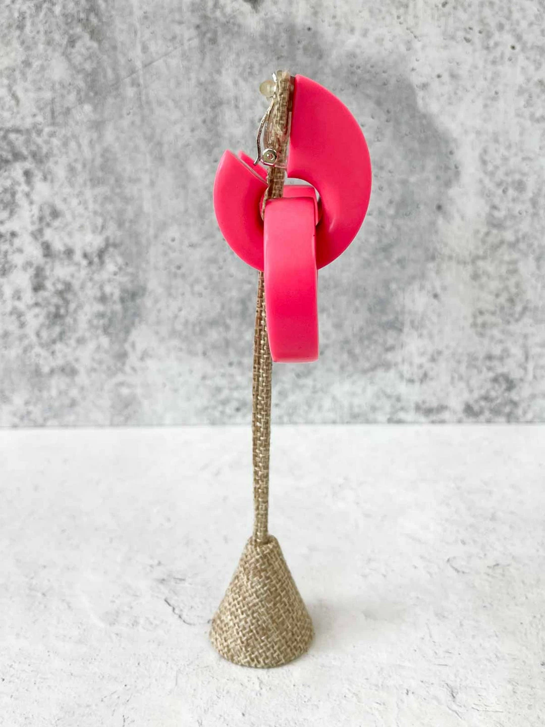 These clip on earrings have a link effect with circular drops from a curved hoop.