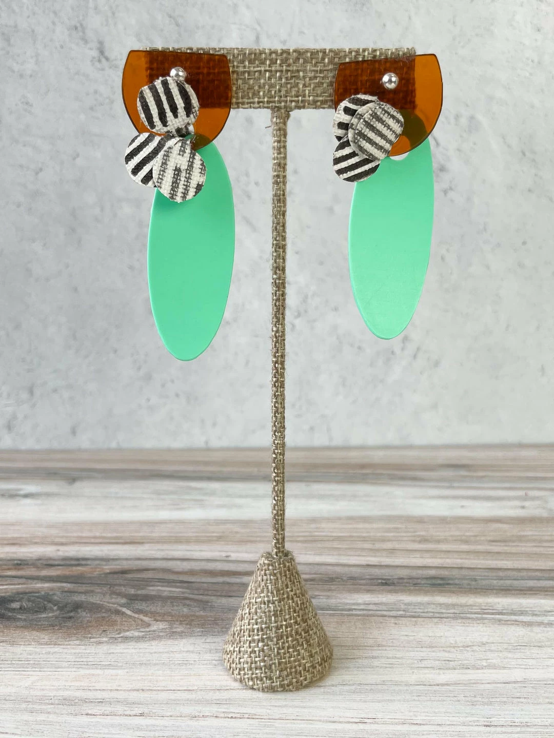 Pattern Gems Elongated Oval Earrings, Clear Orange/Mint