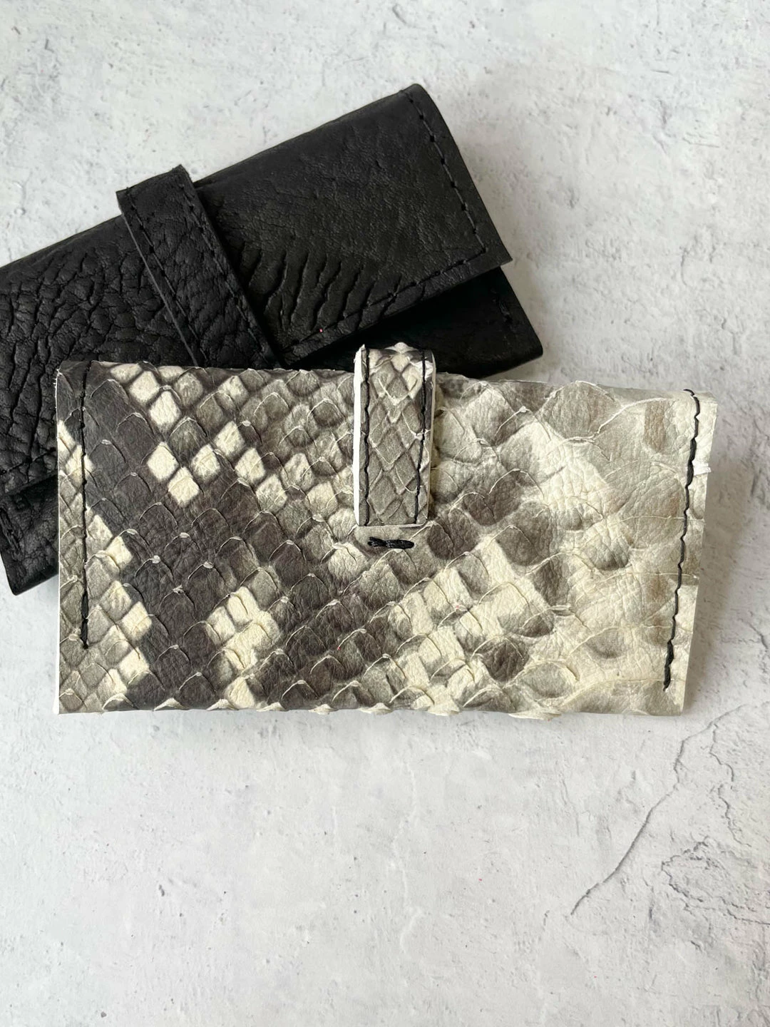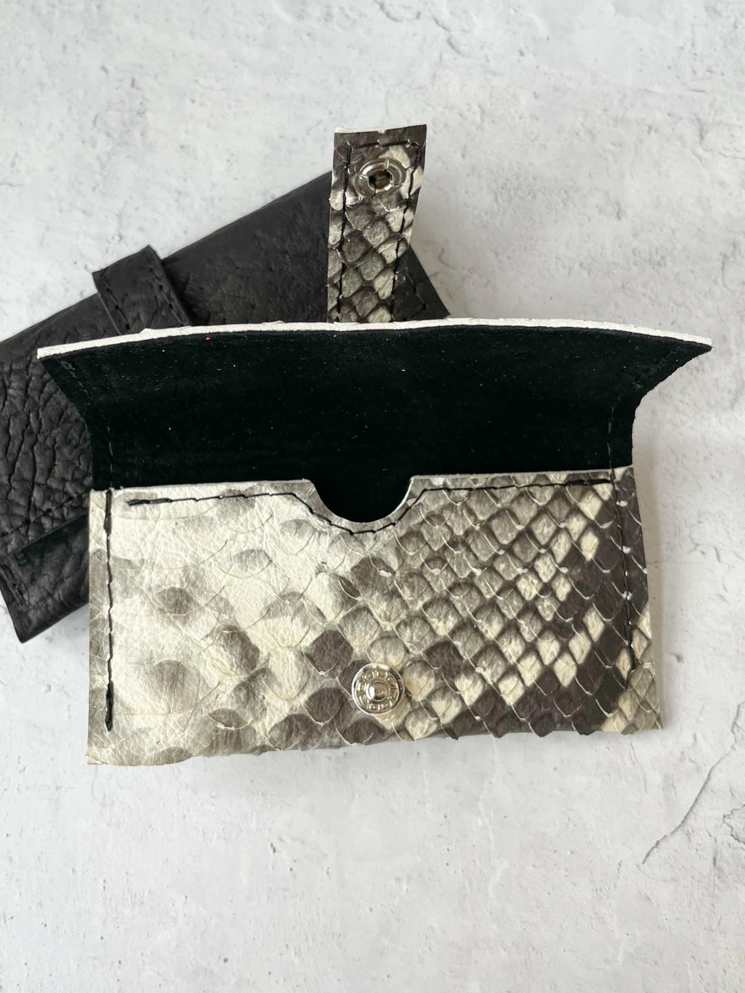 This chic card holder is the perfect case for credit cards or business cards, with a simple snap closure flap design.Â