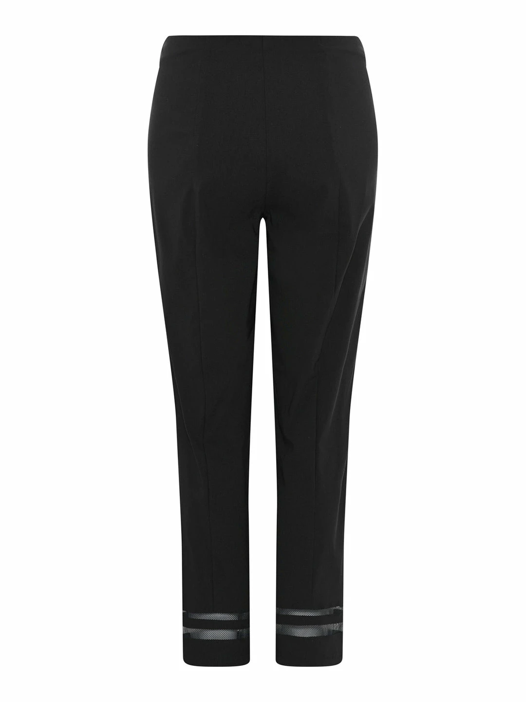 Robell’s signature bengaline stretch is perfect for a little bit of structure. This contempoary basic has a cropped length with slim legs that feature mesh insets at hemline. A clean pull-on waist with front darts and vertical seams at the back of legs offer a flattering silhouette.