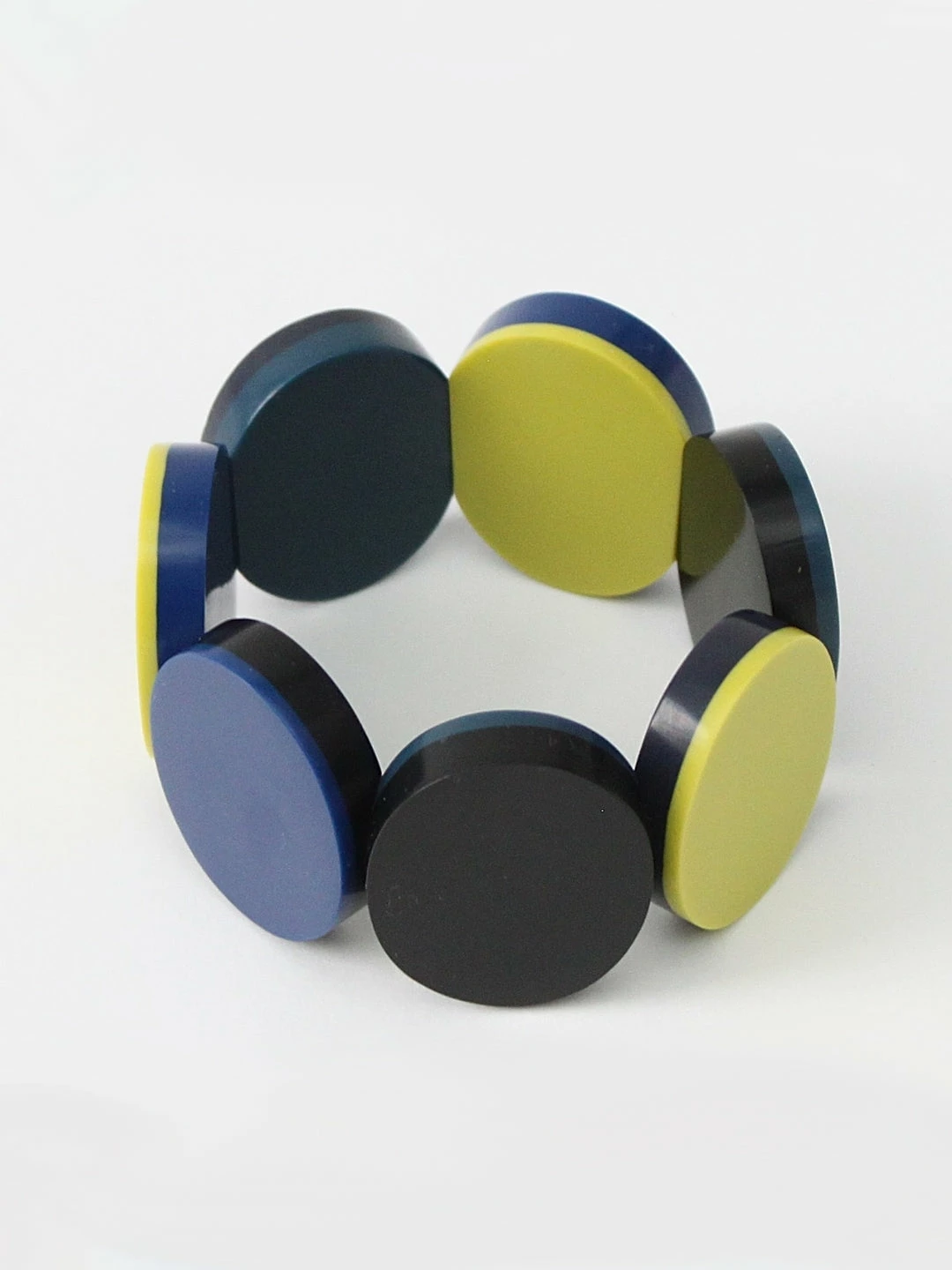 This lightweight resin bracelet is a must-have for any season and every wardrobe! The elastic allows this to be slipped on easily – no clasps! Resin beads in a mixed colors with a base of navy make up this one-of-a-kind bracelet, so it will go with anything and everything!