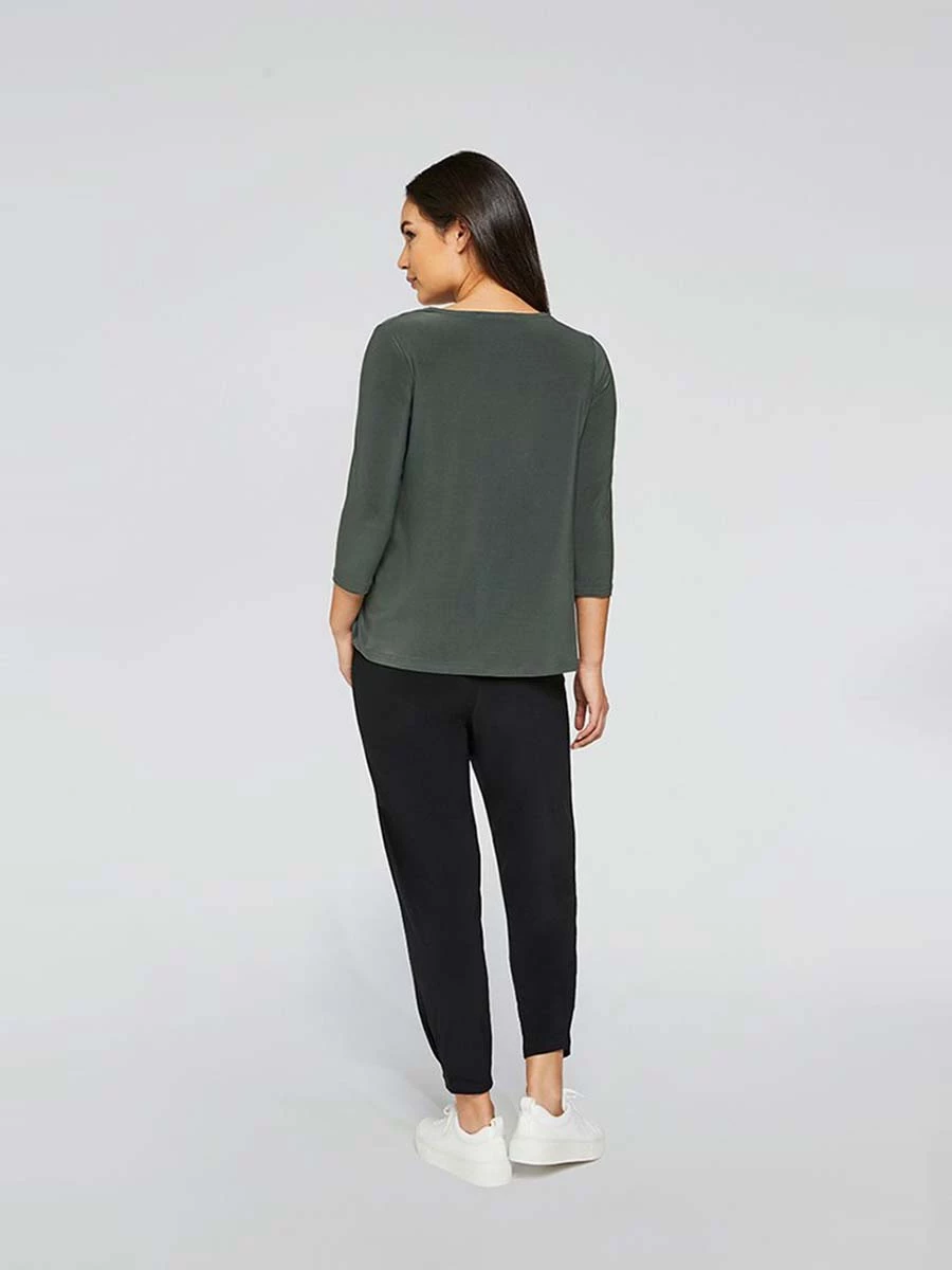 A wardrobe essential Sympli’s Trapeze Top has a relaxed slight a-line body with and even hemline, round necklace and three quarter sleeves.