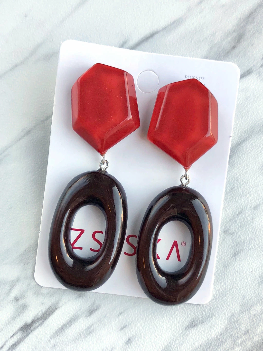 From Zsiska’s “Chorus” collection, this earrings features resin oval drops from a faceted geometric resin post.