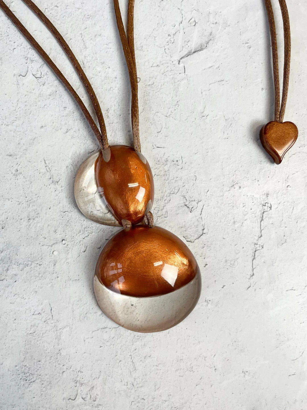 From Zsiska’s “Luxus” collection, this adjustable necklace features high shine resin with painted metallic color. Two piece flatten pebble design has clear translucent accent, on adjustable fabric cord with signature pulls.Â